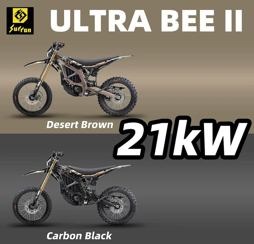 The Surron Ultra Bee is built for serious off-road riders who want high torque, long range, and premium handling. It comes with a 74V battery, full-size frame, and upgraded suspension — ready to dominate any trail.