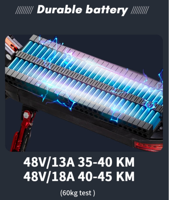 - LONG LIFE LITHIUM BATTERY :Using 48V18Ah lithium battery with overcharge protection. It can travel 31-37 miles (45-50 kilometers) on a single charge.